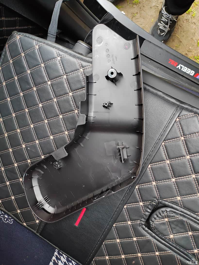 下图这个就是内侧装饰盖拆掉之后内部的样子,相对来讲,里面的装饰盖要比外面的好拆一些,因为整体跟座椅的干涉不是特别的大。