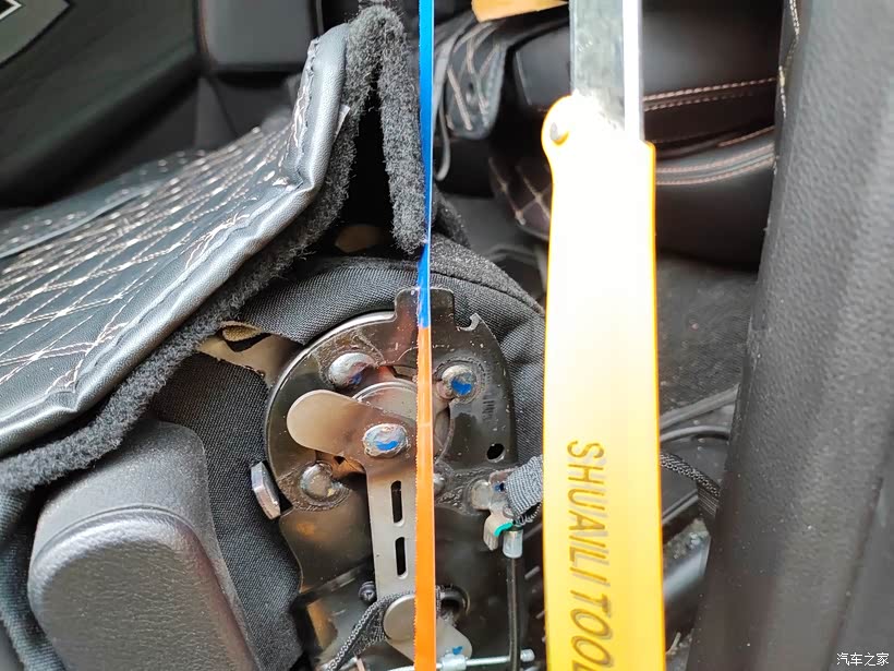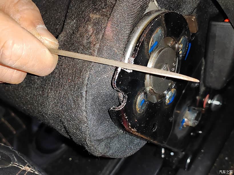 如果是有帮手的话,建议最好是找一个角磨机,这样的话切割比较快,而且打磨也很方便。但如果就自己弄那角磨机就派不上用场了,因为角度比较小,同时座椅旁边的东西阻碍也是比较大的,弄不好就容易伤到座椅。