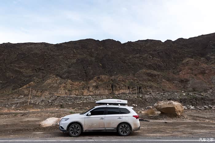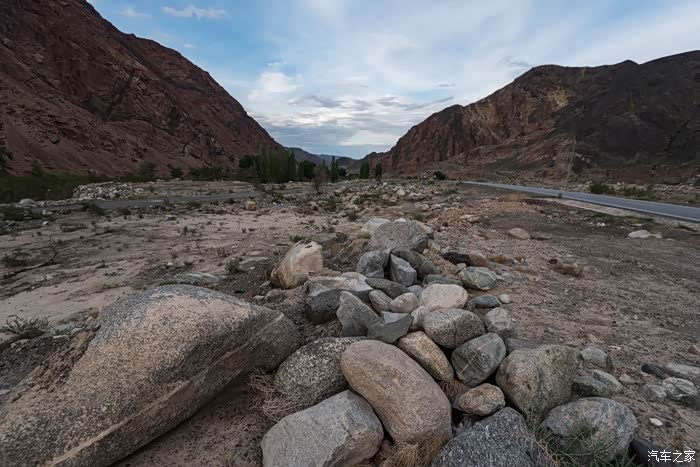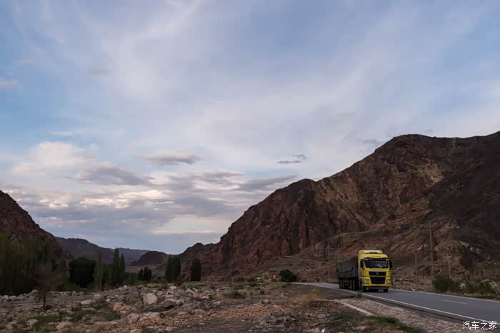 下午才从库尔勒出发,不走高速的我们计划当天在半道驻车休息,第二天中午才到乌鲁木齐。太阳慢慢西下,我们准找地方驻车休息,山里的风已经开始叫嚣,沙尘暴也开始欢乐起来,密集的沙子打在车窗上淅沥沥作响。风有多大?开着车能感觉到车身在摇晃,双手握着方向盘也很费力,中间遇到好看的风景下车拍照,迎风面很艰难地打开了车门,站在马路边拍照被吹得踉跄。驻车休息是不行了,也没有城镇可以住店,硬着头皮继续向前走,等待大风过去或者找个避风的地方。