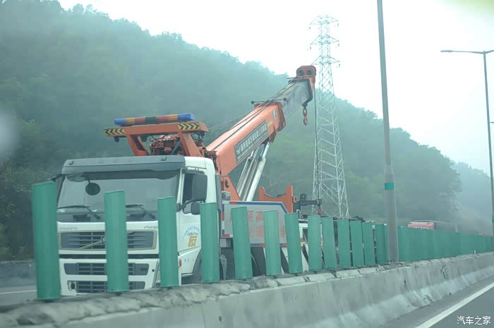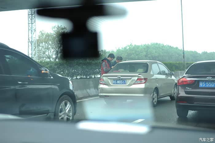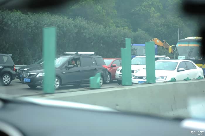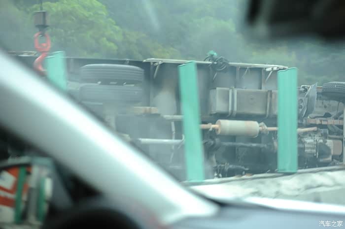 这一路上的经历比较丰富。上高速走了大概十几公里,遇到两次堵车,第一次是对面车道一台大货车在快速车道翻到,车头横在路中间,压坏了中间护栏,已经有吊车正在吊起车头,大货车上翻到下来的货物一部分堆在公路上;这次大塞车估计起码让两边车道堵住了好一会。第二次是刚好我前方不远处,两车追尾停在路上,堵住了快速车道。
