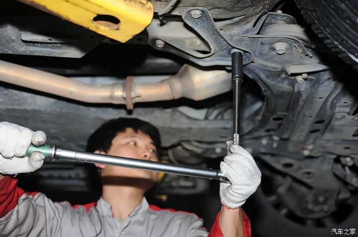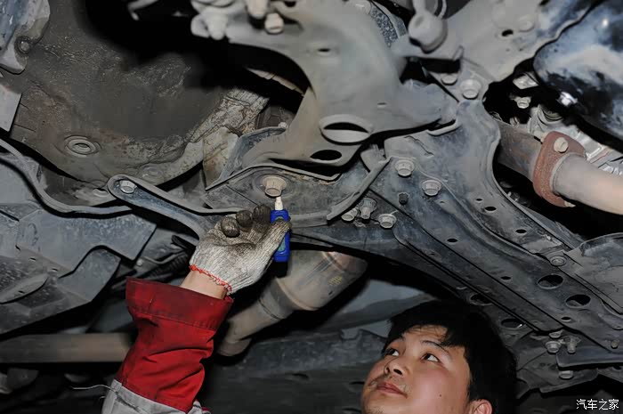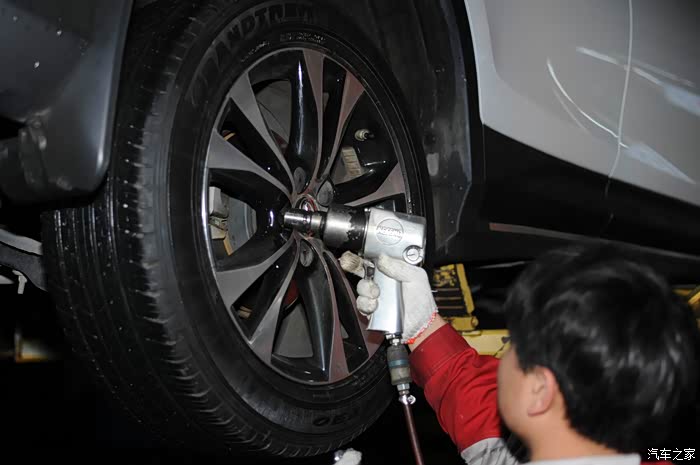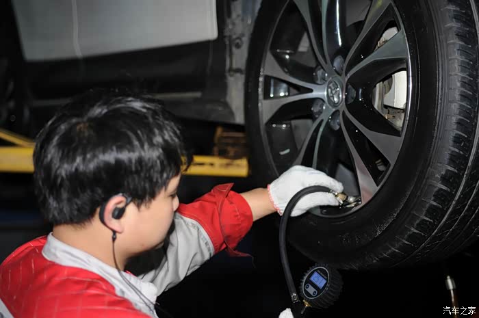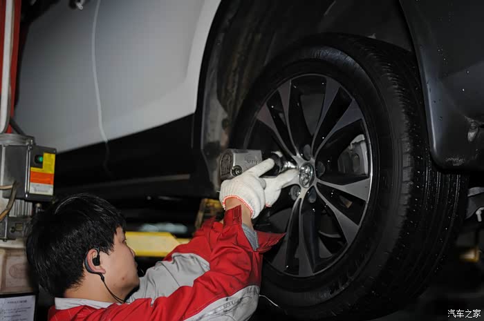 保养的详细过程我就不描述了,估计也没人喜欢看,随手拍了些图供车友参考。整个过程大概花了大约两个多小时,感觉这次这个师傅十分仔细,非常娴熟。和上次两个小孩子比起来,人虽然只有一个,但是却比以前两个人做得好多了,有很多之前没有的细节。比如拧螺丝,之前感觉他们跳跃着在底盘上挑螺丝拧,因为我没站在车底下,看不到具体情况,但是能从眼神中体会到是在走过场;而在检查轮胎环节,他们也只是流于形式。这个小伙子完全不一样,我不仅看到他在检查底盘过程中一眼一眼仔细查看,并且时不时用手摸,拧完以后做记号;检查轮胎时,用工具挑出缝隙中的碎石,并且把每个轮胎充满气,尤其是备胎。我其实很在意备胎充气,有一次胎压报警就是备胎引起的。在保养的最后,顺便让他们更换了之前点烟器保险,雨刮器胶条和局部补漆。