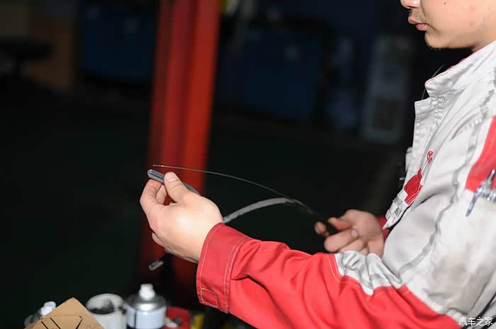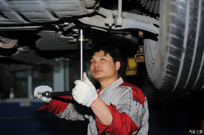 接待我的,还是去年那个熟悉的面孔。小伙子很热情,一阵简单的了解以后,领我进入了维修车间。车间里很忙碌,没有空位,据说还有很多车辆在排队。这次给车做保养的只有一个人,和以前一样,这个师傅也不说话,点头打过招呼以后,看了一眼施工单据就开始了作业。