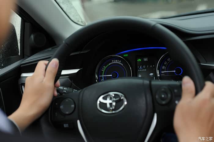 接近中午时分,终于到了此次目的地。来之前,听说卡罗拉混动刚刚上市,所以专门电话约了试驾。其实开惯了RAV4,不习惯卡罗拉这种低矮的车型,坐在里面感觉蹲着一样,有压迫感,主要出于对普锐斯的期望,想体验普锐斯,4S店里暂时没有,所以想试试混动的感觉,只好从新上市的卡罗拉混动入手了。试驾的是一款顶配版的混动卡罗拉,行驶里程不到五百公里。试驾了大概几公里,几十分钟的体会下来,觉得还比较好开,启动的时候很安静,只是在加速过程中才略有一点声音。那个像游戏鼠标一样的档位杆很有意思,控制它几乎不需要力量。加速吧,还是可以的,不推背,但是略雄厚,因为没有跑高速,所以只在常用的40-60公里/小时速度上体验了一把。转向时方向盘略重,不知道是新车的缘故还是很久没开过别的车。目前体会就这么多。