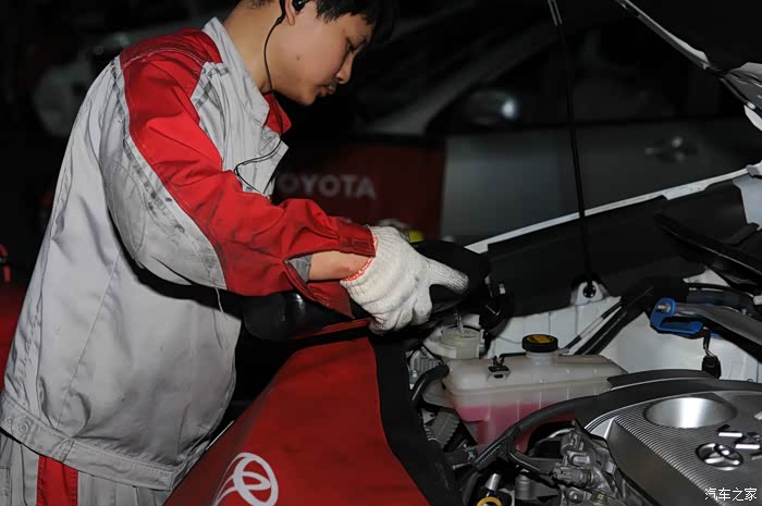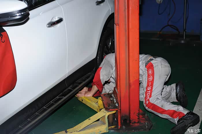 试驾完卡罗拉混动回到店里,外面已经下起了小雨。在店里买完保险,按照流程,准备进入到车间去看看他们这次怎么操作。刚好的是,店里买保险除了送一堆枕头和水壶之类的以外,还送了一次发动机维护,可以此次一并用了,相得益彰。