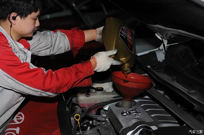 对于这款车的发动机究竟需要多少润滑油,之前总有车友质疑我是不是被添加多了。这次我专门问了师傅,他说我们这款发动机一般需要4.5升左右,所以会有一大壶和一小壶。而且,为了保证润滑油更换得彻底,需要足够的预热和放油时间。