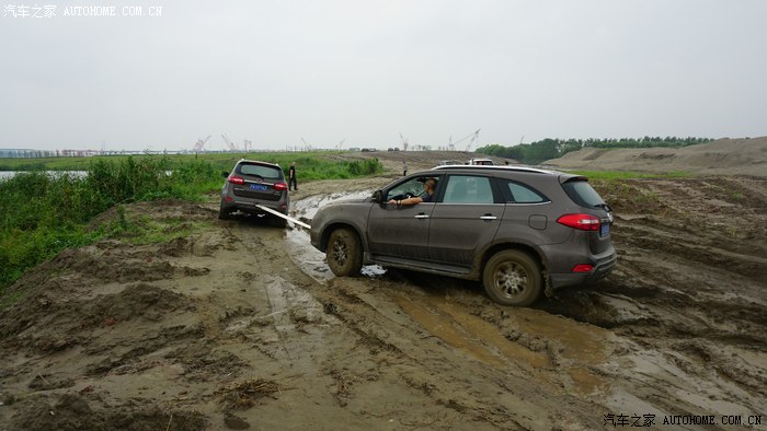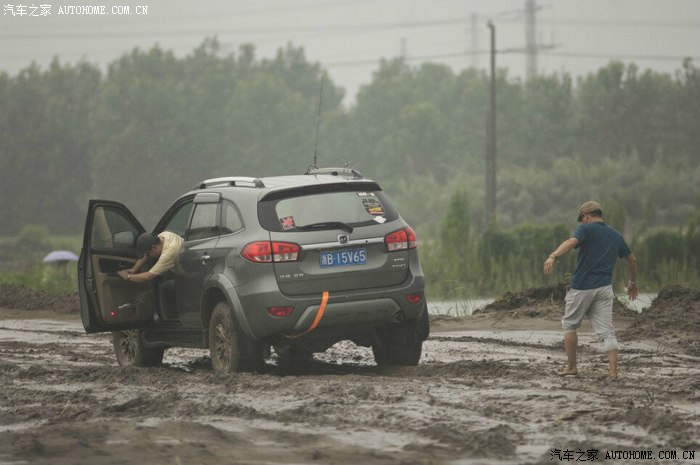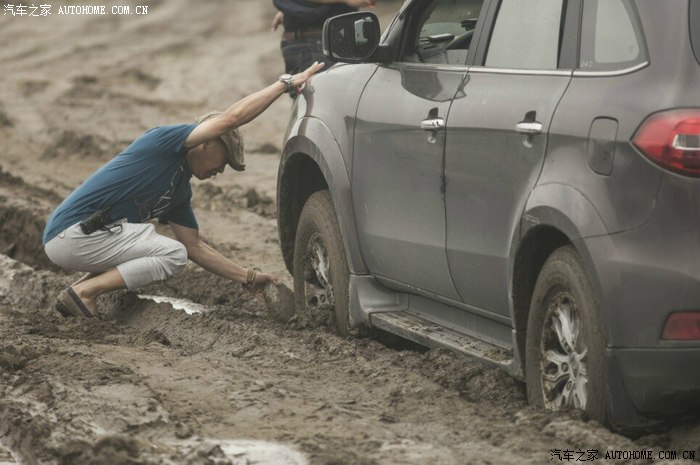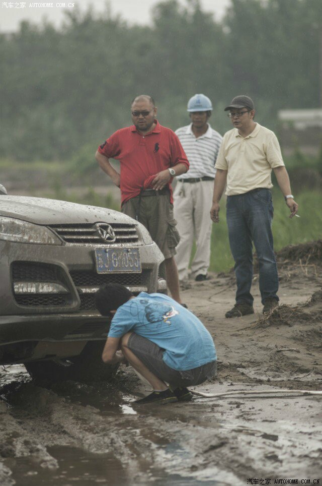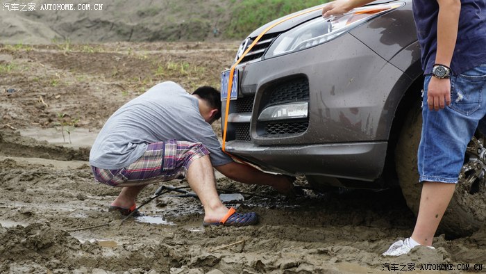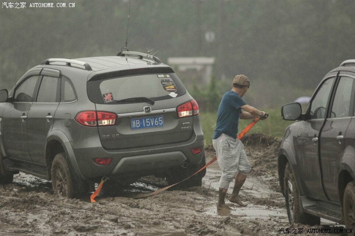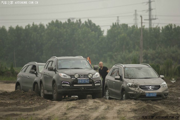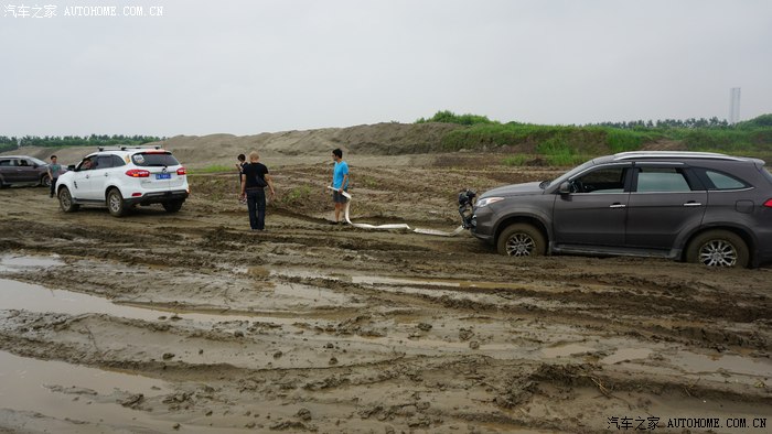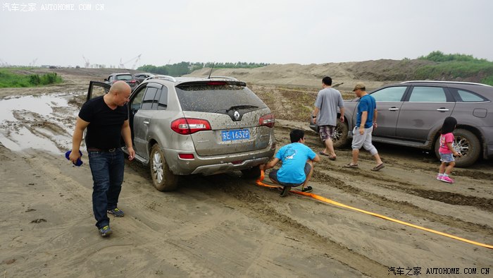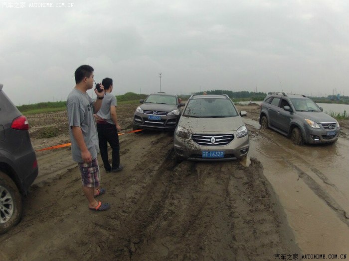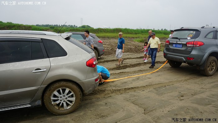 前面几部车都顺利进场,突然手台有呼救报告后面有一部两驱及同行科雷傲陷车