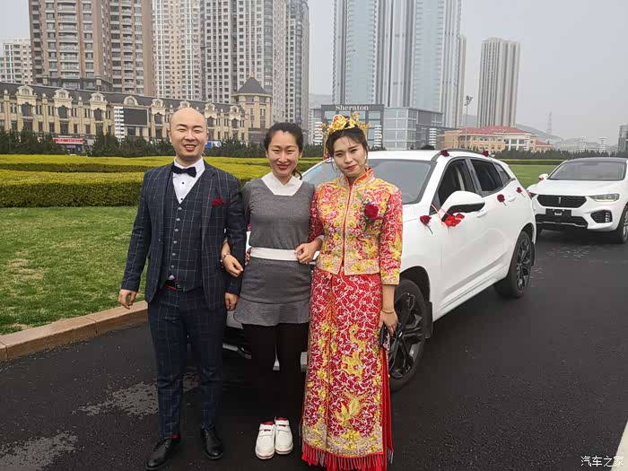 我们在新娘的楼下集合,大连今日下起了小雨,我昨晚刚刷的车