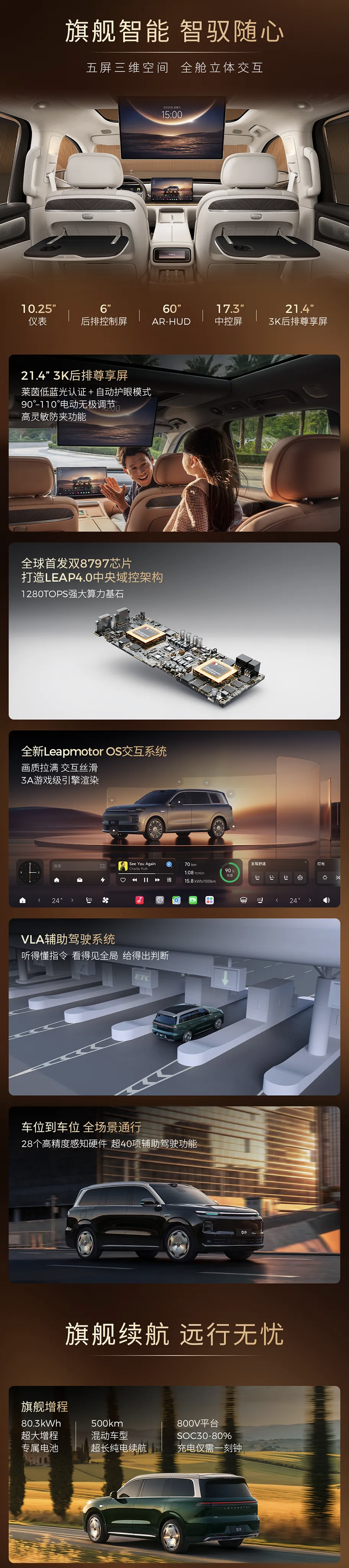智驾方面,全球首发8797芯片,1280Tops算力,目前看过比这个算力高的就是小鹏P7了,3颗图灵AI芯片,算力2250TOPS。