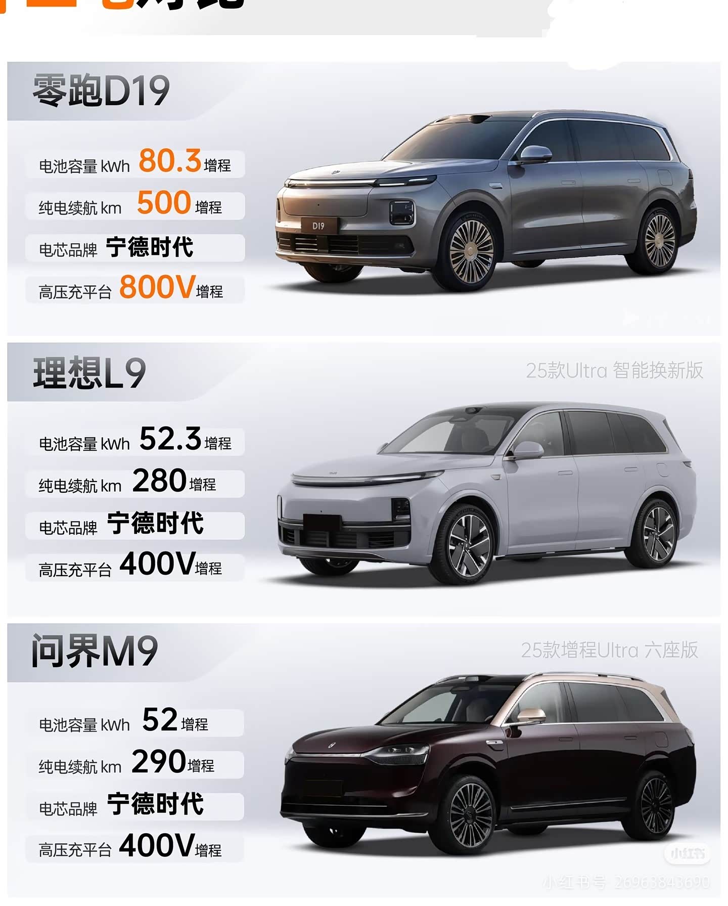 增程版80度大电池,800V快充,CLTC 500的纯电续航,纯电版115°大电池,全系宁德时代,非常夸张。