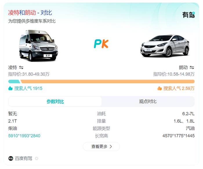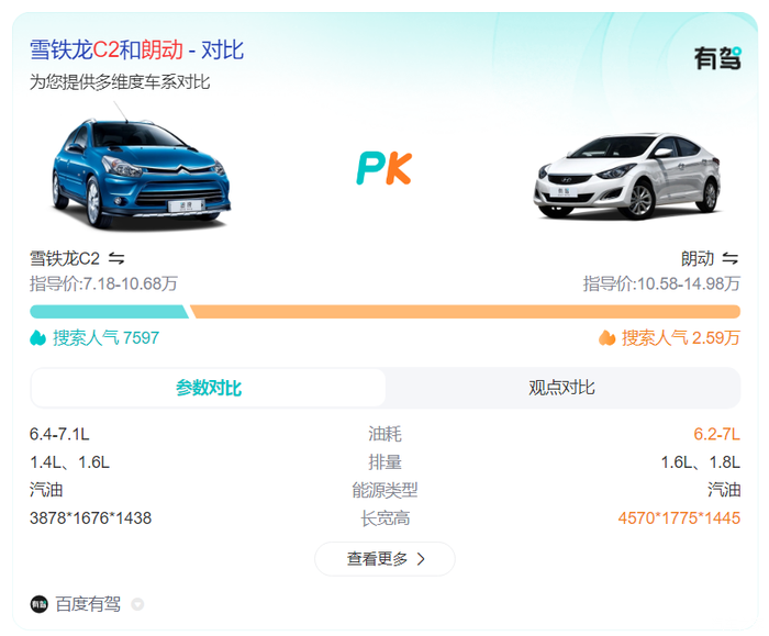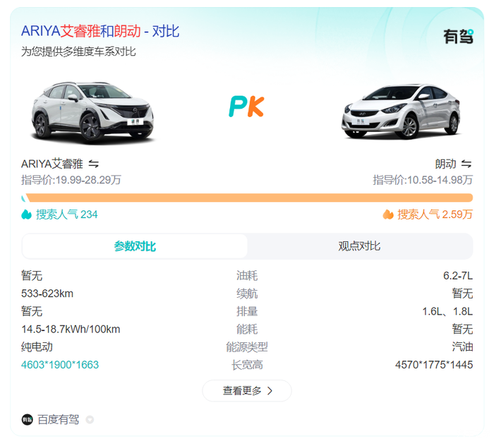 可以看出,朗动在搜索人气上远超这些车型,显示出其在市场上的高关注度和广泛认可。这主要得益于朗动的高性价比、出色的油耗表现以及适中的价格定位,使其成为众多消费者的首选。
