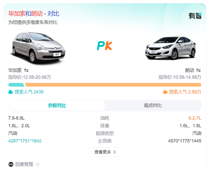 毕加索:其指导价在12.58万至20.98万之间,搜索人气为2435,相比朗动的2.59万有较大差距。