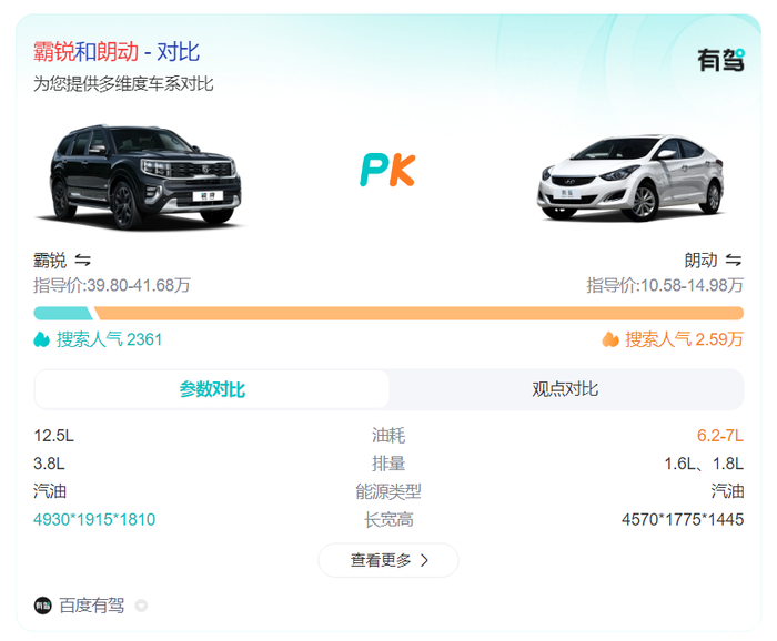 霸锐:作为一款指导价在39.80万至41.68万之间的高端车型,其搜索人气仅为2361,远不及朗动。