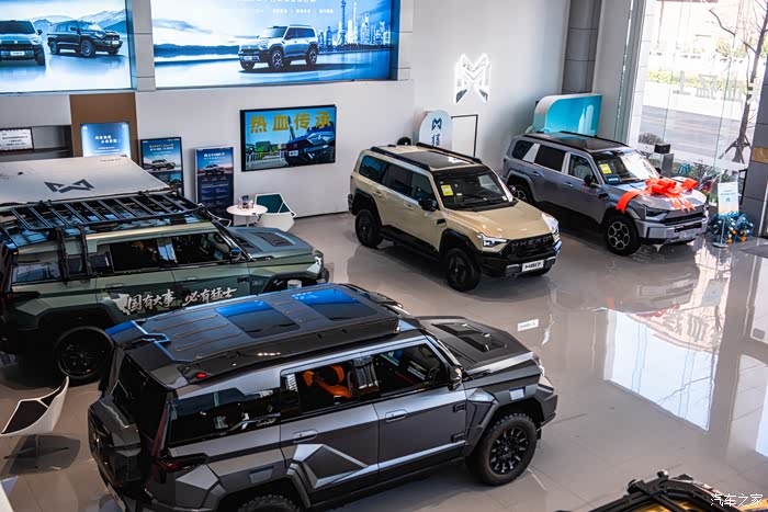 店里跟机甲战士仓库似的,造型不一、但同样拥有硬朗、科幻风格的东风猛士车型,瞬间让三双眼睛亮起来。