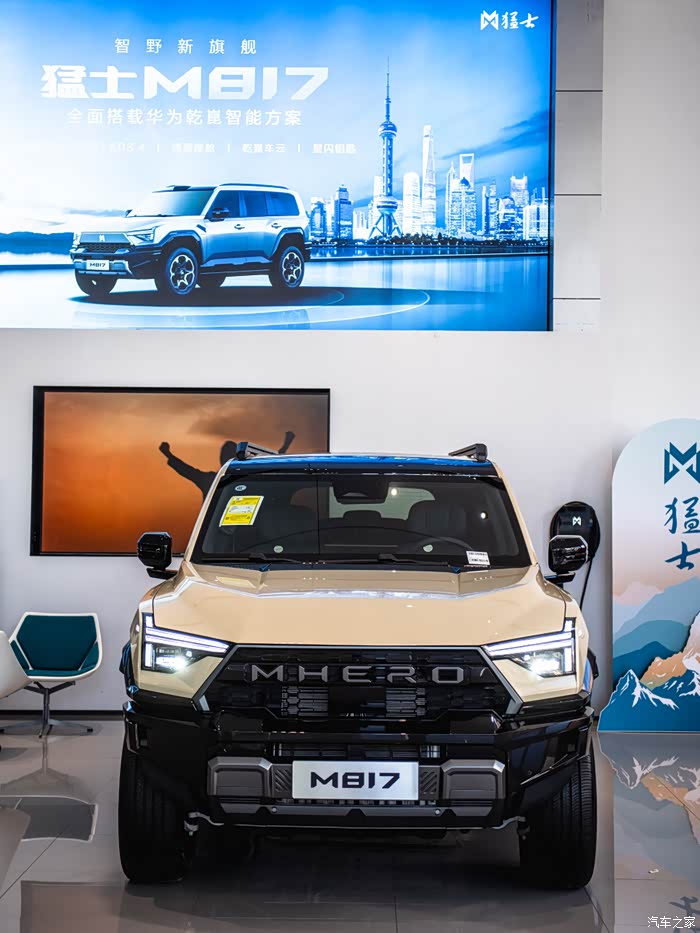 猛士M817是东风和华为强强联手,打造出的“智能越野第一车”,它也是行业内,首个搭载华为乾崑ADS 4和鸿蒙座舱5系统的越野车。