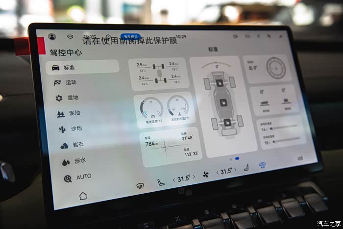 除了标准和运动模式外,还有雪地、深雪、泥地、岩石、沙地、涉水6种全地形模式,一键切换,小白秒变越野大神。