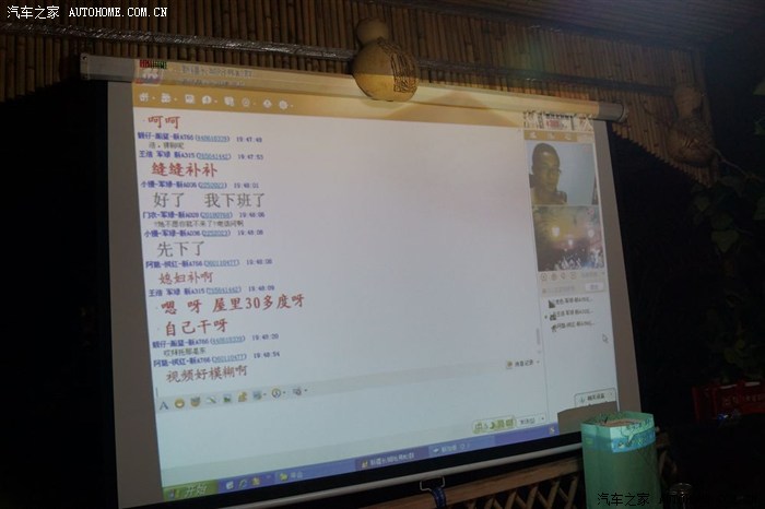 老色同学很用心,搞了个投影仪,让没能参加年会的远在哈尔滨的石头,王浩还有其他车友能通过视频一起参加我们的年会!
