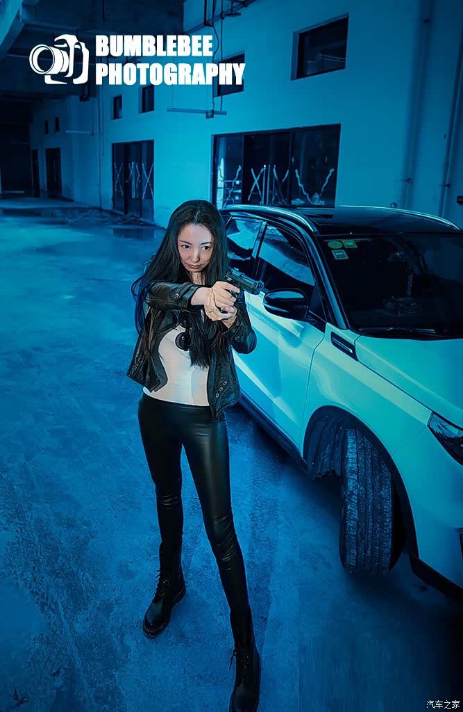 皮衣裤配上烟雾和枪支,媳妇儿成功变身为女特工啊~