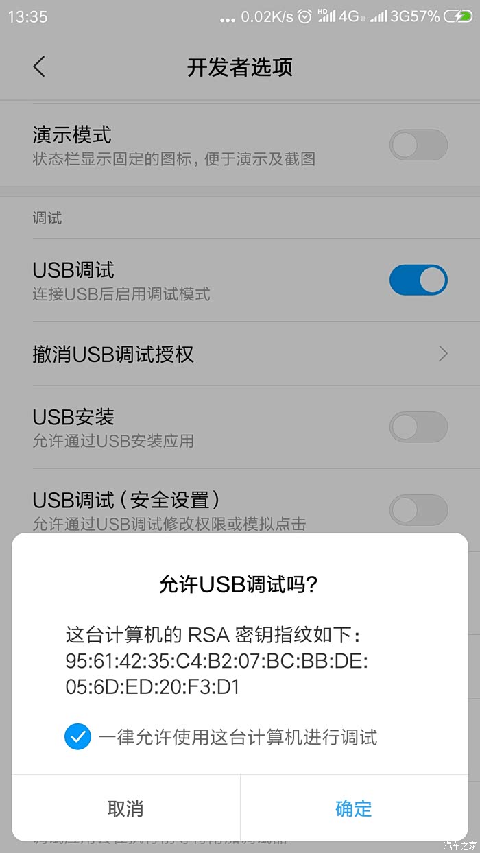 2.进入设置,在“开发者模式”里面,打开“USB调试”和“USB安装”功能