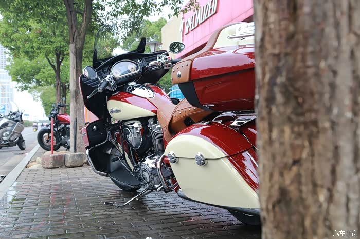 我们这台Indian Roadmaster是2015年末生产的,也就是小改款后的最后一批(改款后的主要升级了导航系统),当时车主中意的是Chieftain,但苦于无现车,要车只能等明年,而且看到Roadmaster之后被两侧膝部挡风所吸引,重要的是有现车!购买之时正好天津港到了一台,也正好是车主所喜欢的双色配色。于是本不喜欢旅行车的车主,最后还是选择了这台Roadmaster,有时候买车也是要看缘分的。