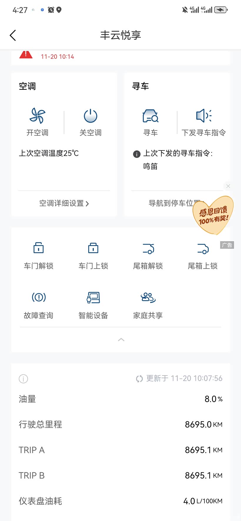 10月份,说是仪表盘bug,需要升级,而且不能OTA升级,得去4店,虽说是免费的,但我不想去4S店啊,浪费时间。