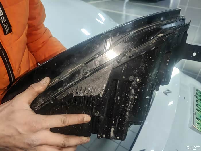 事情的经过是这样的,我在一次调头时由于疏忽大意,车辆右前侧碰到了旁边停着的Q5左后保险杠,以为只是小擦挂,修复一下双方的保险杠就好了,没想到在经过售后师傅拆检后定损:对方雾灯被撞坏了,换个灯要几大千,我的eπ007除了保险杠漆面破损外,右前大灯支架断了一截,会直接影响大灯稳定性,那就只有报保险就一起处理吧。