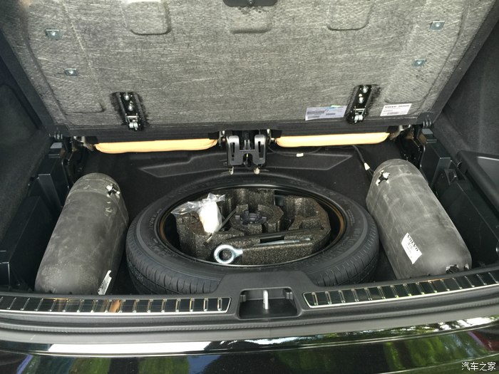 第二排中间座椅提升变身儿童座椅的设计凸显了对儿童乘车安全的尊重,好评。地板中央凸起程度不高,在接受范围之内。中央扶手过于短小,如果放个杯子的话,基本上就放不下手臂了。第三排空间中规中矩,没有了电动调节有些遗憾,但是在第二排稍微前移的前提下,第三排坐175身高以内,正常体型乘客应该还是没问题的。整车内部照明设备和车外一样,全部LED,而且在氛围灯上造诣非浅,除了有7种颜色可调节外,居然还能按照温度来调节氛围灯颜色,回头晚上准备试试去。备胎是非全尺寸的,这个可以理解。