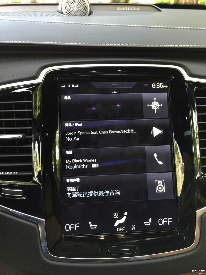 开门进入驾驶室的一瞬间,两侧反光镜自动打开,无钥匙系统在手伸入门把手的一刻自动工作,感觉不错,是这个级别车中应有表现。新车无任何味道,让我再一次感叹瑞典人造车的不妥协。坐上座椅,软硬适中,多项调节的座椅除了基础的功能外,后腰的支撑调整功能,侧腰的包裹调整功能,以及坐垫前部伸缩功能,肯定会让大部分挑剔的驾驶员都能找到适合自己的舒适坐姿。这里吐槽一下。头枕居然是固定的,不可上升或下降,不太了解这是为什么。方向盘握感舒适,各种快捷按键一应俱全,阻尼符合车的档次,稍有遗憾的是会容易留下指纹。说到这里,我不得不再吐槽一下。整车定位是豪华SUV,然而在方向盘调节上却依然使用物理手动模式,让人非常费解,电动调节又不是什么高科技,很多车在十几年前就有此功能,为什么新90不搭配呢?唉,算了,说这个影响心情。12.3英寸的全数字LCD仪表盘表现优越,不会在行驶中出现跳针或迟滞,而且在正中央还可以显示导航地图,这点看上去很高大上。HUD(抬头显示)功能最早应该是源于战斗机,现在在豪华车上也已普及开来。新90的HUD显示功能丰富,能够显示车速,导航,限速。甚至在你不导航的时候,每路过路口,都会显示此路口的车道指示,比如左边只能左转,中间两条车道直行,最右侧车道既可以直行也可以右转等等。视线转到整车最有意思的地方,中控。9寸多点触摸电容屏里面集合了众多的功能,导航,摄像头,蓝牙,音响,胎压,整车数据,语言变换等等。居然还有个雨刷位置功能,方便更换雨刷,挺有意思。两根手指放大缩小导航地图,高分辨率的屏幕和4方向摄像头,以及音响的控制,都能体现出新90的高科技感。说到音响,大家肯定都知道新90选配的是英国的B&W。19个扬声器的感觉很难以用语言形容,我喜欢音乐,但是由于对音响系统了解匮乏,所以耳朵也不专业。但是,它已经足以震撼我,和所有坐在我车上的小伙伴了(装13新技能get)。更加人性化的设计在屏幕下方被体现出来。双闪,播放,暂停,声音调整等常用物理按键能够让你快速找到并使用他们。这时最最装13的东西出现了。手套箱不走常规,如果说一键开启你不是第一次见到,那我告诉你,你还可以给手套箱上电子密码,是不是就觉得有些奇葩了?在美国枪支合法,我在想是不是可以放把进去?当然,手套箱冰镇功能还是要有的,毕竟是这个级别的车了。前风挡玻璃电加热功能已经不是新鲜玩意儿,但是我很喜欢。在冬天的时候很实用啊。正中倒车镜的无边设计很有感觉,内嵌电子指南针应该是常规功能了。抬头是宽大全景天窗,设计感不错。低头,右手边真皮包裹档杆,不是水晶的...好遗憾….。后面的启动旋钮和行车模式滚轮造型特殊,说是叫钻石切割,不管怎么说,手感非常好。打开中央扶手箱,里面是CD播放器。两边倒车镜的盲点监测系统,这都是这个级别的车必备的。