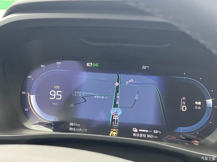 驾驶模式的话,仪表盘上有三种模式可以选择,一个是地图模式,也就是展示的信息和中控高德地图展示的一样,还有就是简约导航模式,会在仪表盘中央放大展示路口信息,最后一种就是无信息模式,纯黑模式,我的话一般就使用地图模式。