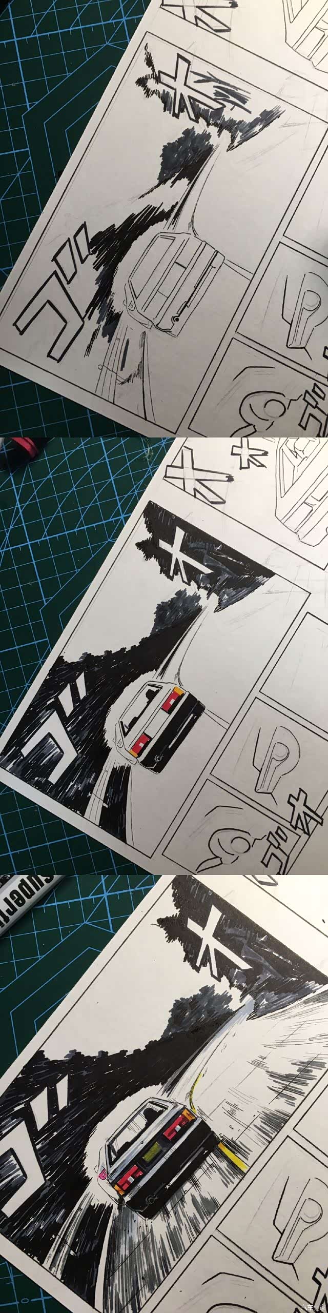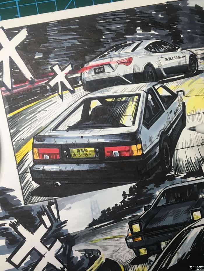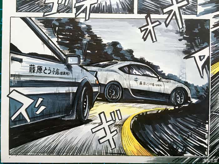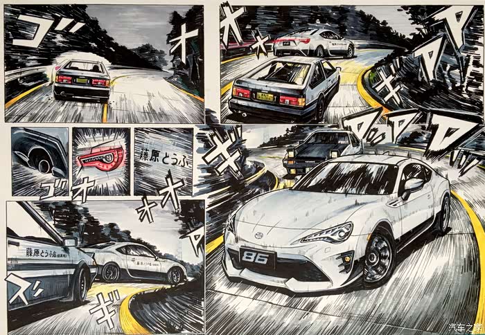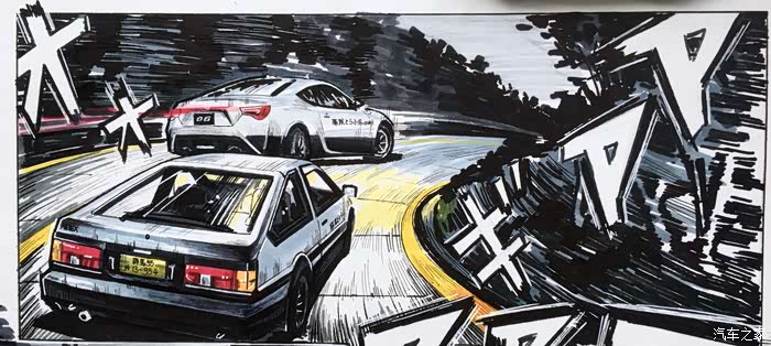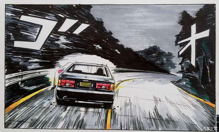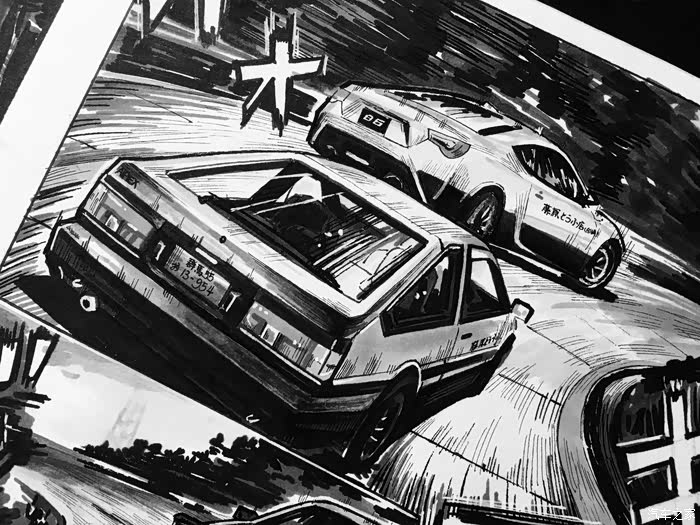 以上就是这张画的内容。虽然是用的彩色漫画风格,但说到头文字D最有感觉的还是黑白漫画。