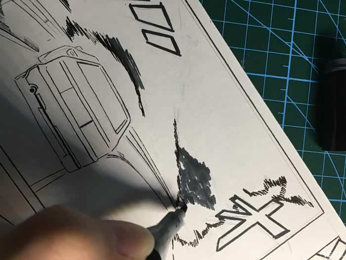 值得一提的是车辆从写生画风到卡通画风就是一个轮廓勾线的差距,轮廓及车身线条勾线后,写实的画风立马转变成动漫的画风。