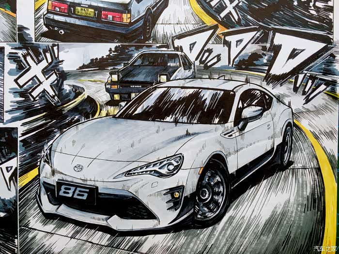 这张画的灵感则是来源于头文字D中的AE86,毕竟提到86人们首先想到的还是AE86,而GT86名字的由来是对那个年代的平民小跑满满的敬意。