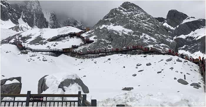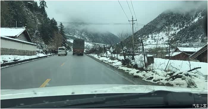 参观完松赞林寺之后,我们就返程回半途的虎跳峡景区,途中又再次经过G214国道香丽段,路上又在下雪了,雨刮被冻得刮起来嘟嘟响。