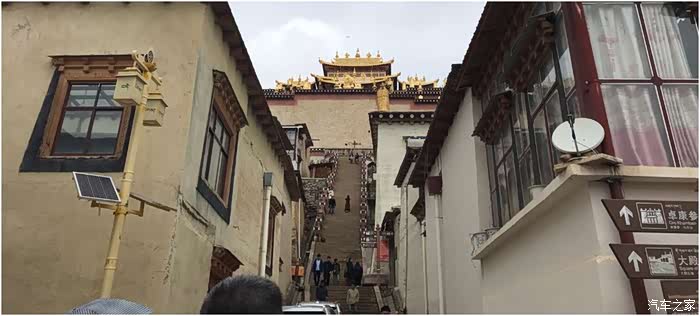 因松赞林寺地处海拔约3300米,空气较平原地区稀薄,攀登时需根据身体力行,不建议激烈运动,否则容易得高反。阶梯的两边有几家藏民卖她们自家的牦牛奶和牦牛酸奶,买来尝了尝,牦牛奶微甜(她们自己说兑过水,否则热值很高),酸奶很酸,酸得我吃不习惯。