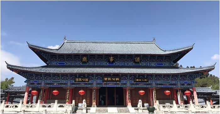 导游说,木府议事厅上的三块“诚心报国”牌匾是明朝时期明皇帝赐给木府的,因为在明朝时期,木府为明朝的统治立下了赫赫功劳。