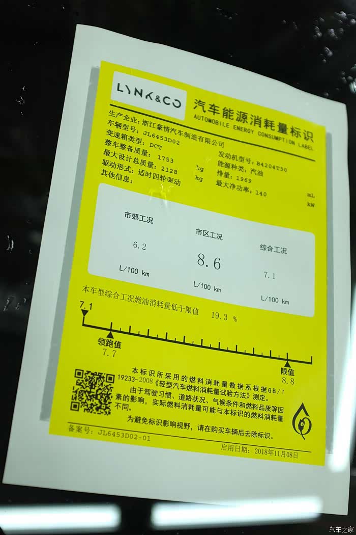 01劲Pro上与这台T4机头搭配的是吉利和沃尔沃共同研发的7速湿式双离合变速箱,最大承载330Nm扭矩,换挡时间响应小于等于0.2秒,官方宣传传动效率高达97%,算是吉利在双离合变速箱领域的试水之作,好在01上市一年多来,7DCT爆出的问题不多,前期顿挫问题已可以通过软件升级改善,这台变速箱已经开始全面匹配吉利多个2.0T/1.5T发动机的车型(领克01 02 03、吉利博瑞GE、缤越、嘉际、星越)。