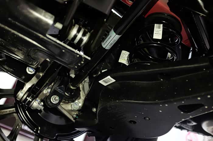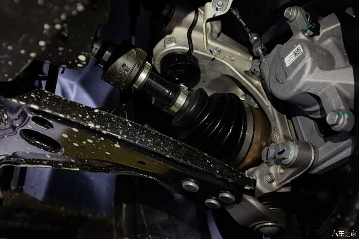 01劲Pro采用的传动系统是博格华纳供货的Haldex适时四驱系统,常规路面行驶时后轮没有动力,只有电子系统检测到前后轮速差后才会驱动离合器给后轮分配动力,后轮可获得0~50%范围内的动力输出(不同于大众途观L和探岳的全时四驱,那套系统后轮任何时候都有最低5%的动力输出,优点是四驱介入时更平顺,缺点是比适时四驱油耗略高几个百分点)。