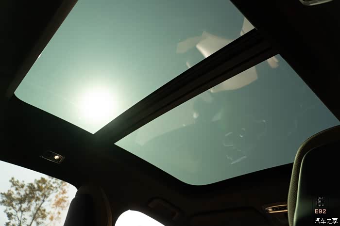 超大的全景天窗,照片就可以看出有隔热膜,后排老板座位可以控制天窗窗帘开合,和天窗的开启关闭