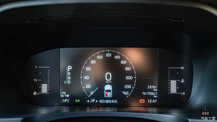现款的沃尔沃已经改成12寸的全液晶屏幕,这个还是3年前的技术,注意这个排队辅助系统,这套车机集成了两种ACC模式,一个是排队辅助系统,一个是常规自适应巡航配合车道偏离修正