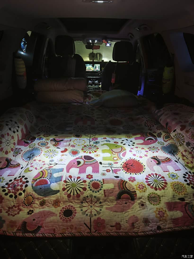 我的瑞虎8派上了大用场,后座一铺平,和后备箱连起来就是张宽敞的大床。夜里裹着毯子躺在里面,暖乎乎的睡得特别香。