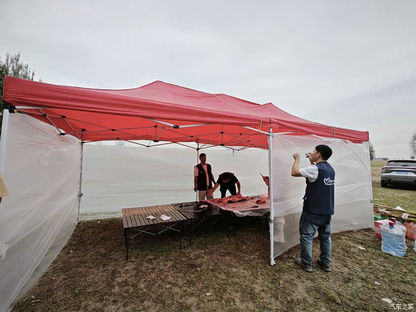 到了地方,车友们比我还热情,没等我动手,就一起帮着搭帐篷、摆桌椅、清点食材。