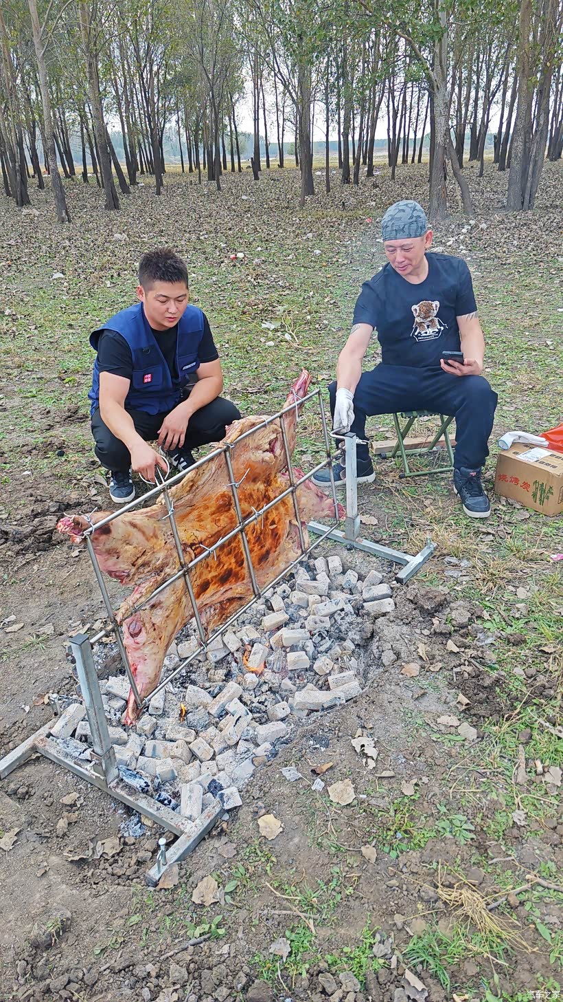 最让人期待的烤全羊,下午就支起架子慢火烤着,油脂滋滋往下滴,香味儿飘得老远。