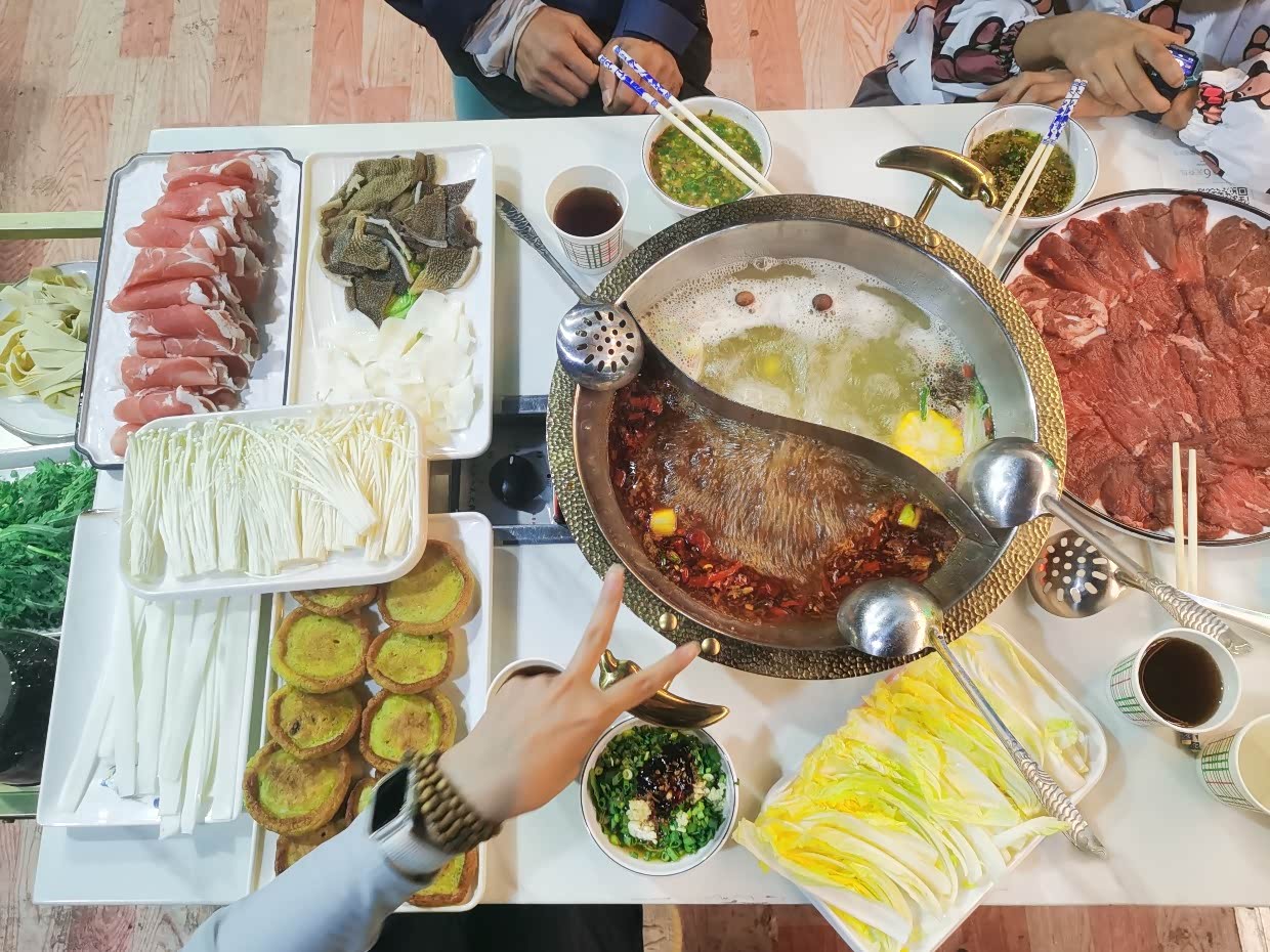 晚上找了一家青海土火锅来吃,先哥又可以吃他最爱的娃娃菜了