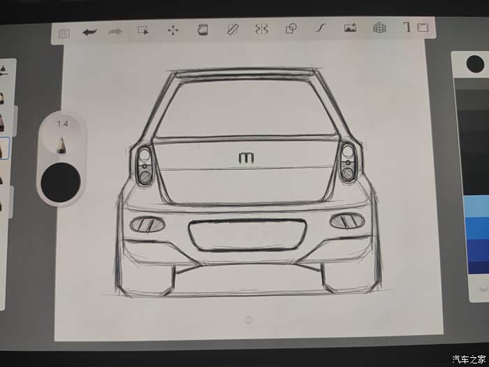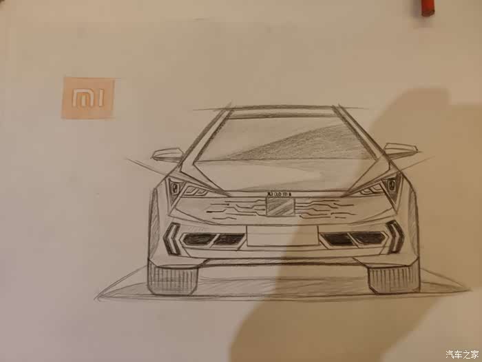 2019年9月5日我第一次绘制小米汽车的猜想图,灵感来自于小米手机的透明探索版,中网采用了电路板纹理的设计方案一直延续至今。