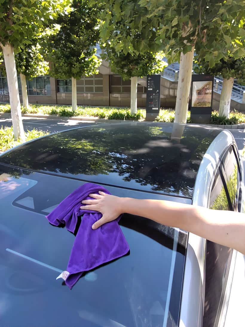 第一步:用洗车专用毛巾,把云海表面的灰尘先清理一边,检查云海表面有没有小石子等杂物,放置随后清洗云海,会有剐划车漆的情况出现。