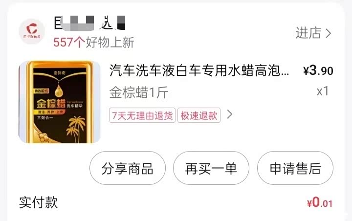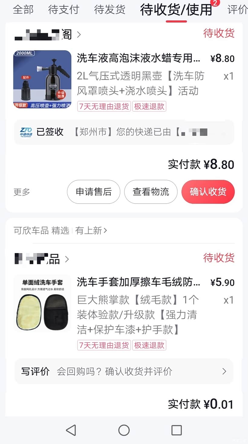 包含了一个喷壶,洗车的金棕蜡洗车液,车载吸尘器,还有三款洗车毛巾和手套。分了两部手机买的,有的工具优惠后只花了一分钱。