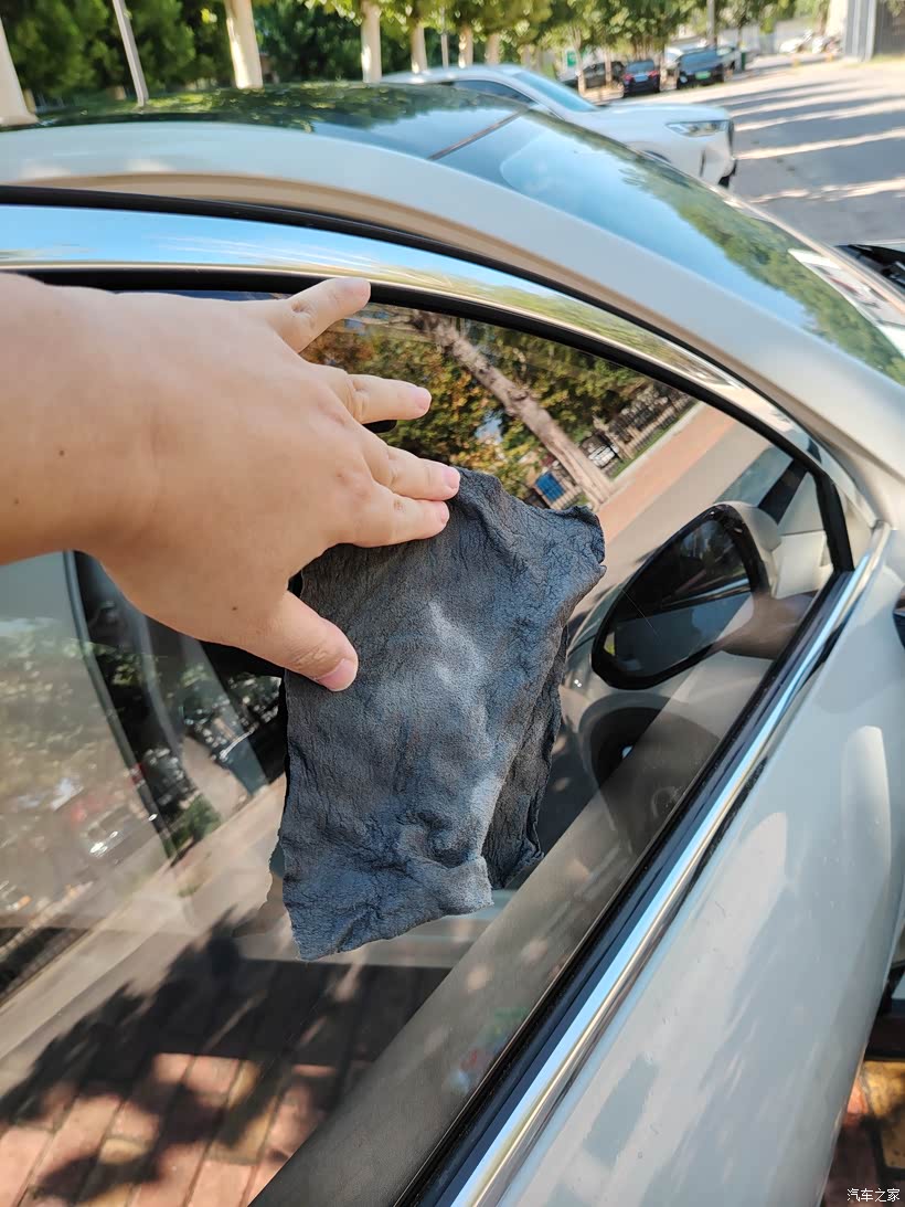 车窗上有很多水印,不好清理干净,所以我用专业的麂皮擦拭,非常干净。