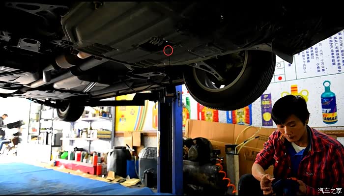 拆开机油口镙丝,准备放机油。一直凑着在看,师傅让我闪远一点别渐身上了!