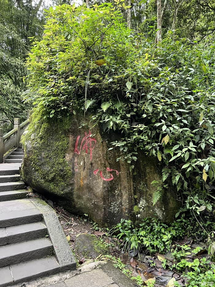 恋恋不忍、怅然若失地看着我老婆的车远去,我才正式开始我真正的“信步走下峨眉山,深度体会下山难”旅程。先到九岭岗,途径灵觉寺、阎王坡、洗象池等。
