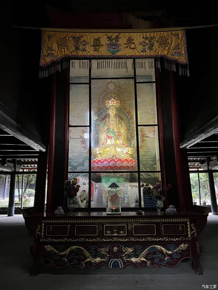寺院精而美,坐西北向东南,依山而建,一共三层,第一层为大雄宝殿,供奉释迦摩尼及十六罗汉。寺前广场,宿龙神和雷神. 佑我华夏风调雨顺。寺院四周风景奇美,绿树成荫,空气清新。 偶尔晴空万里,一望无际。