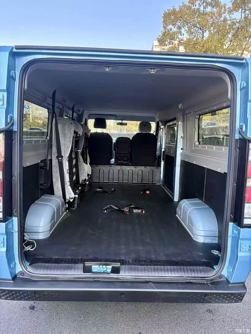 它的空间表现真的太让我惊喜了!整车长度4米9,货厢内空有7.5个方 ,方正的空间布局让空间利用率超高,基本没有什么浪费的地方。我买的是6座版本,第二排和第三排座椅都能灵活侧挂 。平时拉货的时候,把座椅侧挂起来,瞬间变身“小货车”,上次我拉了一批家具,什么桌子、椅子、柜子,轻轻松松就装下了,叉车直接能怼进去装卸货,特别方便。周末一家人出去玩的时候,把座椅放下来,满载6个人也不觉得拥挤,第三排坐两个成年人,腿部和头部都还有一定的活动空间,不像有些车的第三排,坐进去就很憋屈。而且后备箱在常规状态下,也能放好几个大行李箱,完全能满足家庭出行的需求。